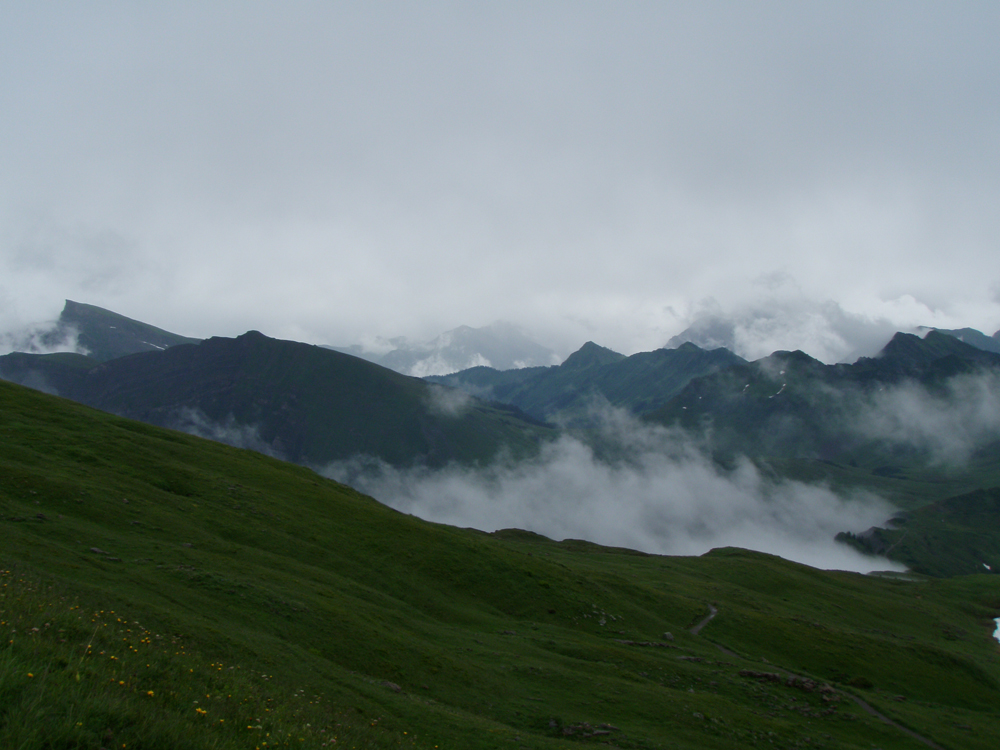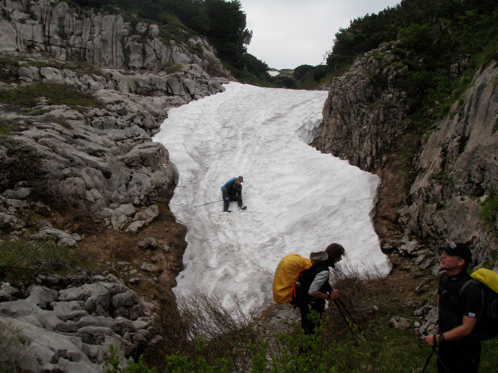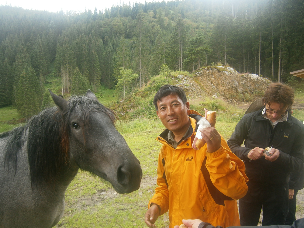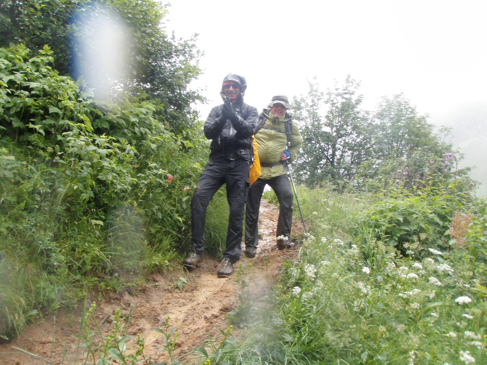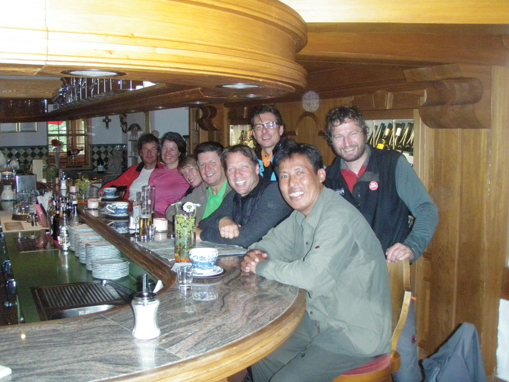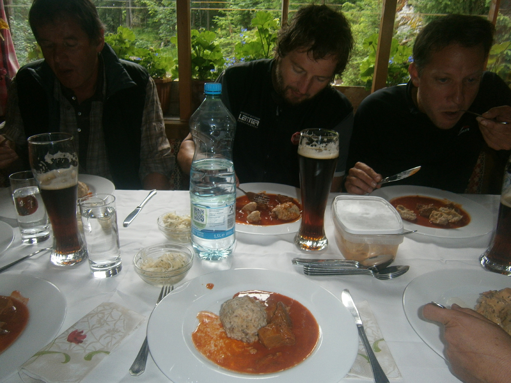 In der Nacht auf Donnerstag erreichte uns eine kleine Kaltfront, darum fiel auch die morgendliche Steinbockschau flach. Wir wählten als Abstieg die kurze Variante nach Zug bis zum Älpele, von wo wir mit dem Wanderbus nach Lech weiterfuhren. Die Überängstlichen starteten am Morgen noch in Regenmontur (sogar der Kazi hatte keine Nerven), wobei es in kürzester Zeit aufriss – nach einem Kurzbesuch auf dem Lecher Markt beendeten wir die Tour wieder standesgemäß im Fünf-Stern-Superior-Hotel Aurelio. Nicht wirklich billig, aber sehr gemütlich, und lecka! Zwei ganze und zwei halbe Tage waren wir zu Fuß unterwegs, mit dem Taxi ging es in 1 Stunde 10 Minuten wieder zum Ausgangspunkt der Tour in Dornbirn zurück.