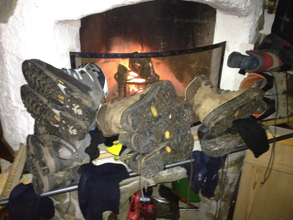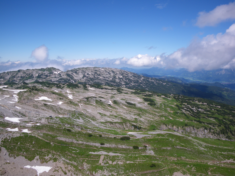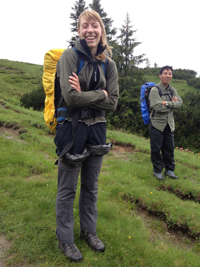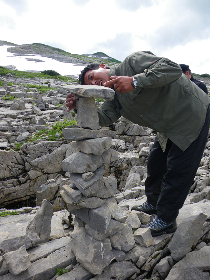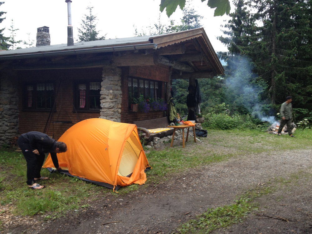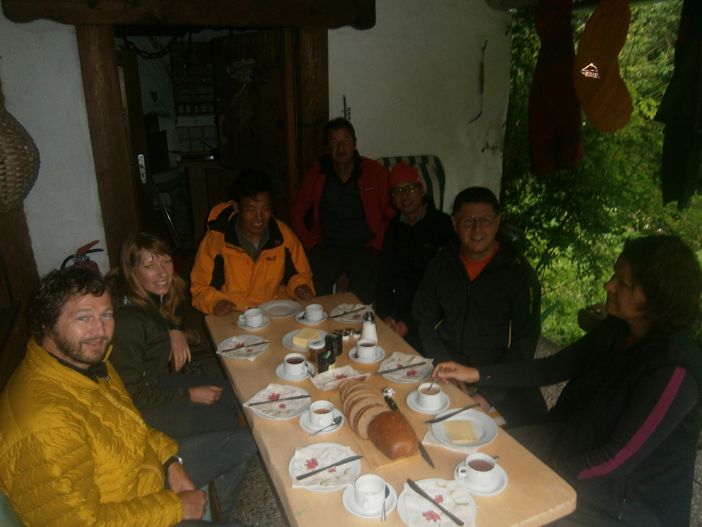 Die Route führte wie immer vom Ebnit (wobei wir dank der Umleitung ein wenig Güterweg sparen konnten) über den Binnelgrat zum Freschenhaus, wo auch heuer Kazis nepalesischer Freund Ang Pasang im Einsatz ist. Martin und Zita haben die altehrwürdige Alpenvereinshütte auf Vordermann gebracht: Eine neue Terrasse mit herrlichem Ausblick vom Rätikon bis zum Bodensee, nagelneue, heiße Duschen, eine top Küche mit perfektem Service – bis hin zum Frühstück mit Alpbutter, Milch, Frischkäse und Joghurt, das täglich von der Saluveralpe raufkommt. So etwas wird in manchem Fünfsternehotel nicht geboten.