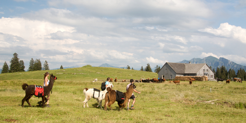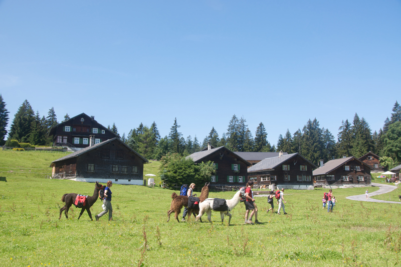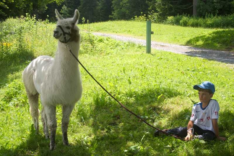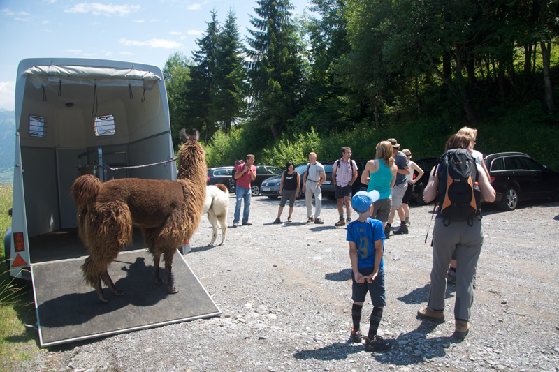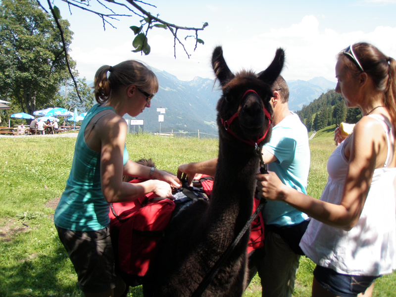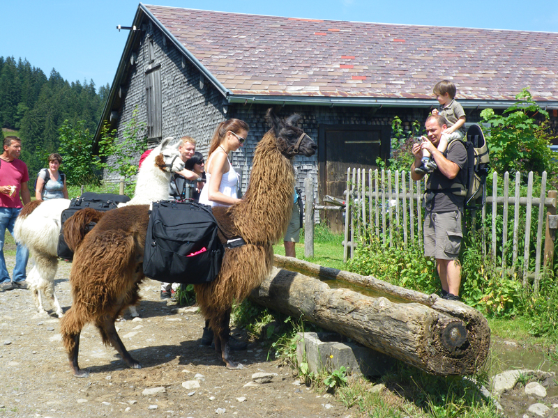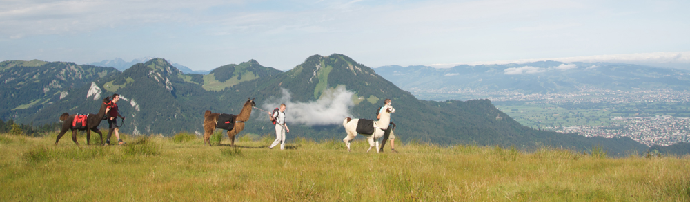 Zweitägige Rundtour am Bödele mit Dolomitos, Tabaluga und Lupino sowie großen und kleinen Lama-Freunden. Von Samstag Mittag bis Sonntag Nachmittag waren die flauschigen Kameliden aus Südamerika unsere feinfühligen Begleiter. Die ursprüngliche Route über die Obersehrenalpe ins Gütle wurde wegen akuter Gewittergefahr verkürzt, was dem Erlebnis keinen Abbruch tat. Mit vegetarischen Spaghetti, Wasserfassen und gemütlichem Lagerfeuer war alles dabei, was zu so einer Tour dazugehört.